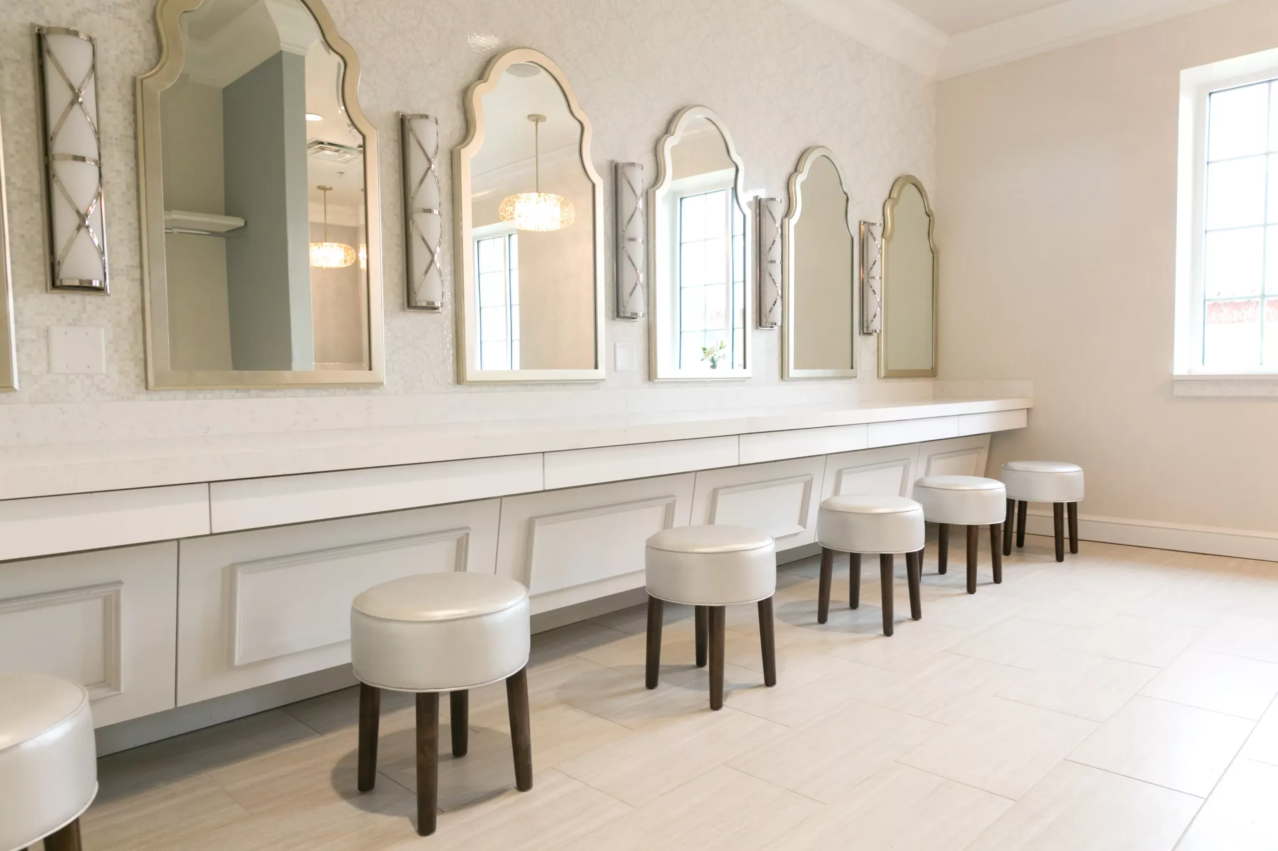 Step into luxury in the Bridal Suite, a sanctuary designed exclusively for you. Unwind in over 700 sq. ft. of opulent space, featuring six make-up stations for simultaneous bridal party preparations, a spacious lounge, a full-length 3-way mirror, and a convenient under-counter refrigerator for refreshing beverages.